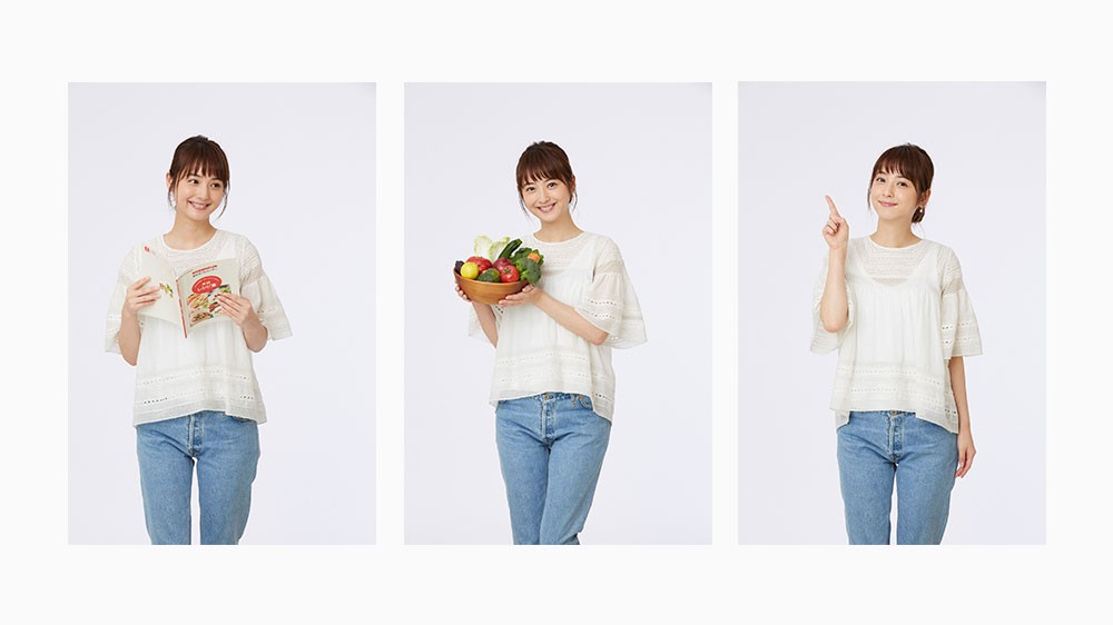 佐々木希さんがチャレンジした視覚は「食生活アドバイザー」その視覚をとるまでの挑戦の軌跡を紹介しながら、ユーザーを巻き込んだインスタグラム連携企画が行われていました。栄養バランスについての知識を身につけるという資格だったため、デザインにも複数の野菜や果物といった食べ物をランダムに配置。ビビットな色を使わず彩度を落とし、コンテンツを邪魔しないように気をつけながら賑やかなデザインを目指しました。